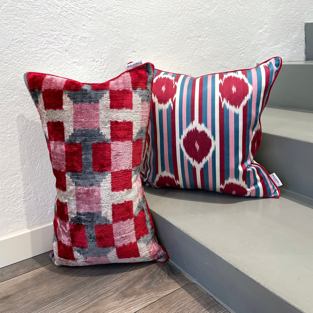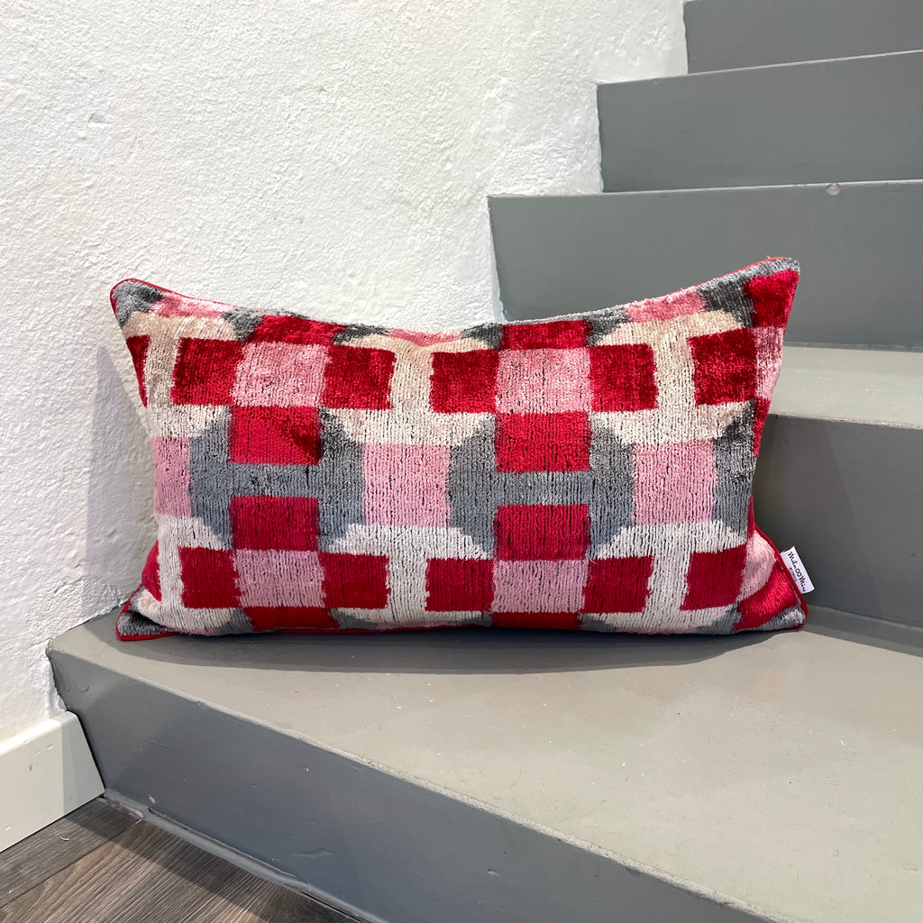 Velvet Ikat Cushion Strawberry | Velvet Ikat Pillow Strawberry