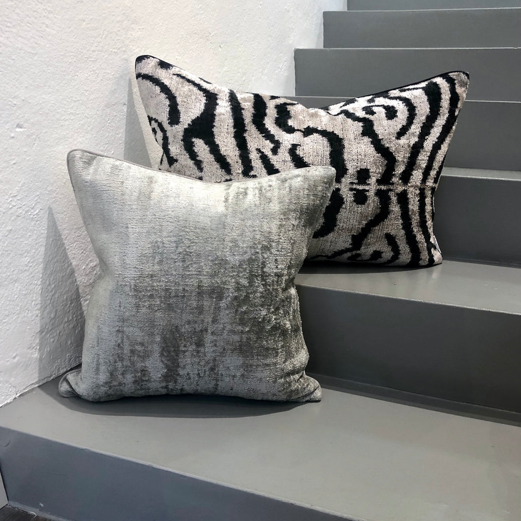 Velvet Ikat Cushion White Zebra | Velvet Ikat Pillow White Zebra
